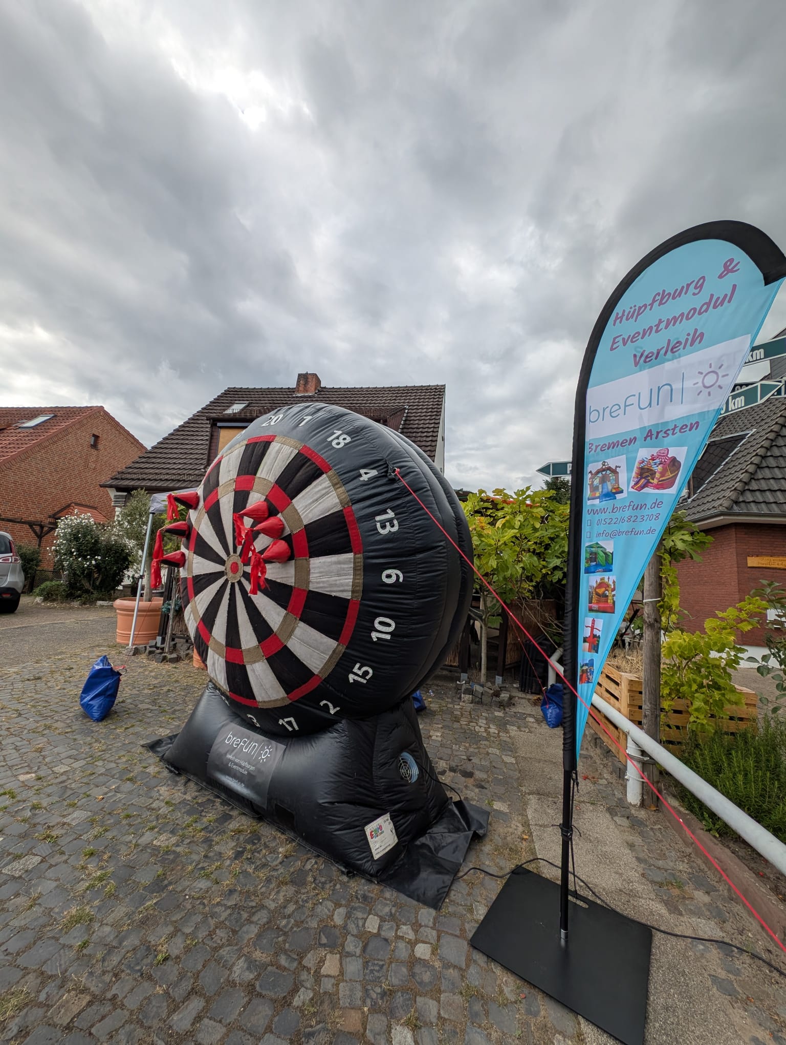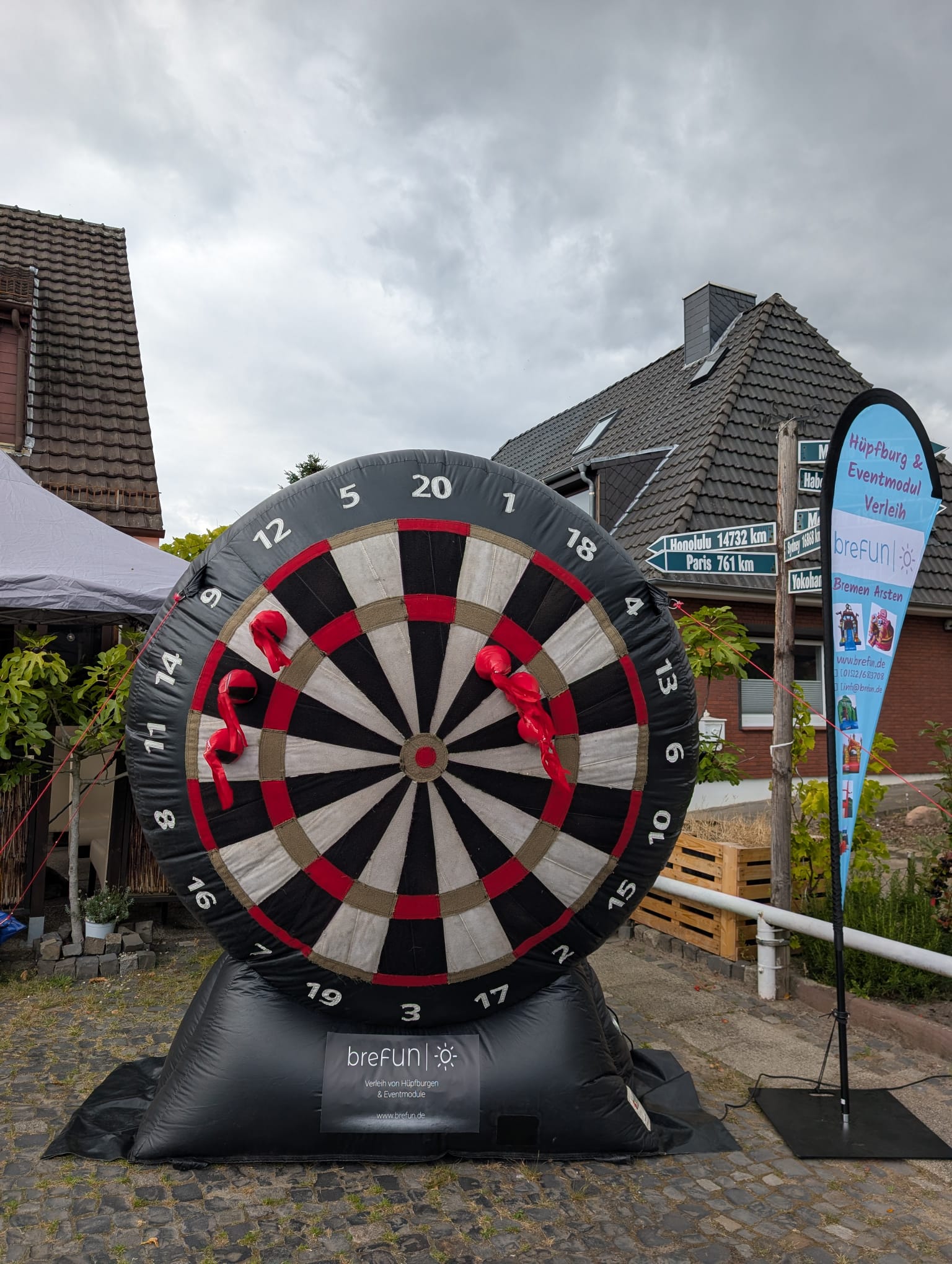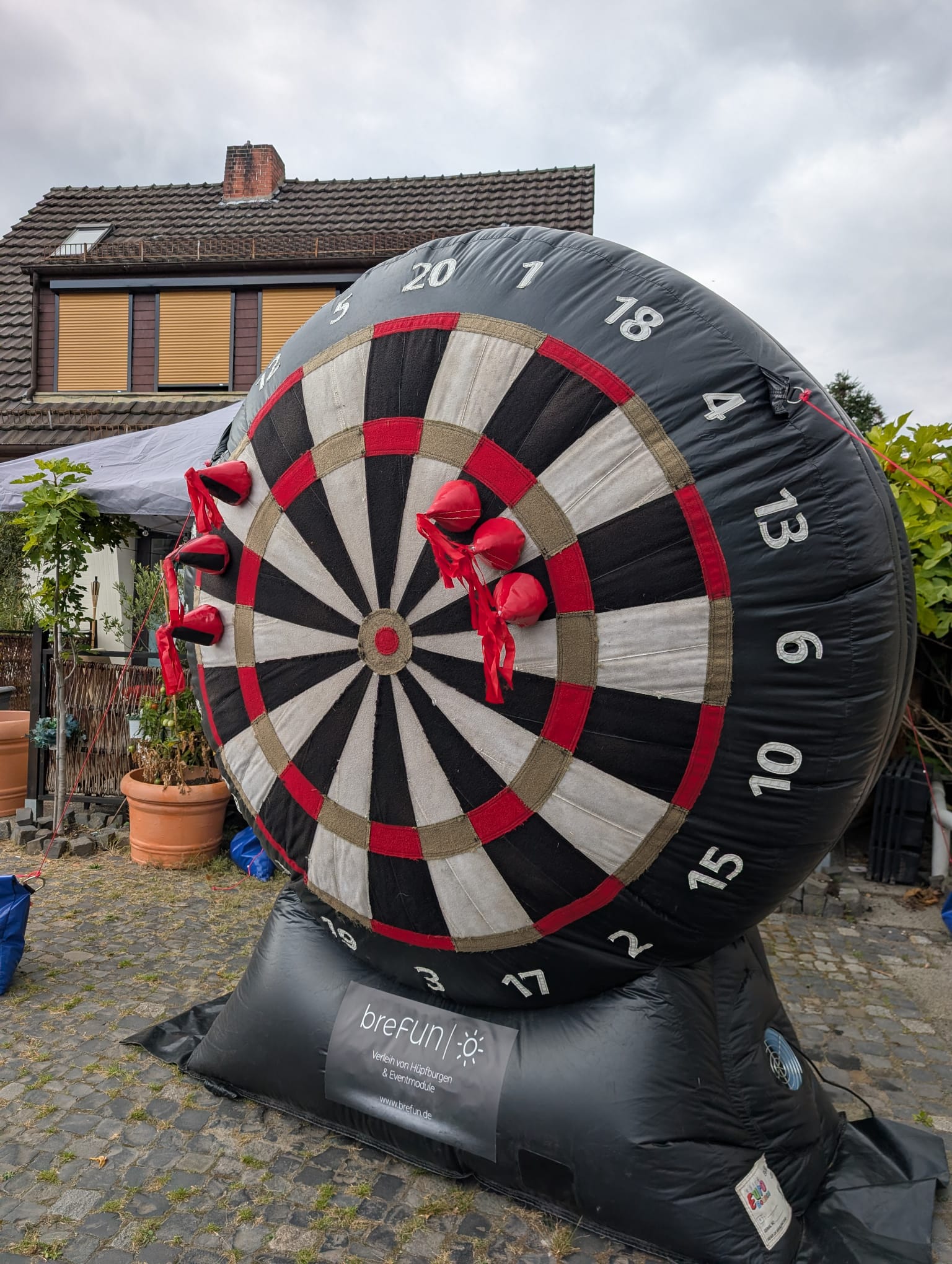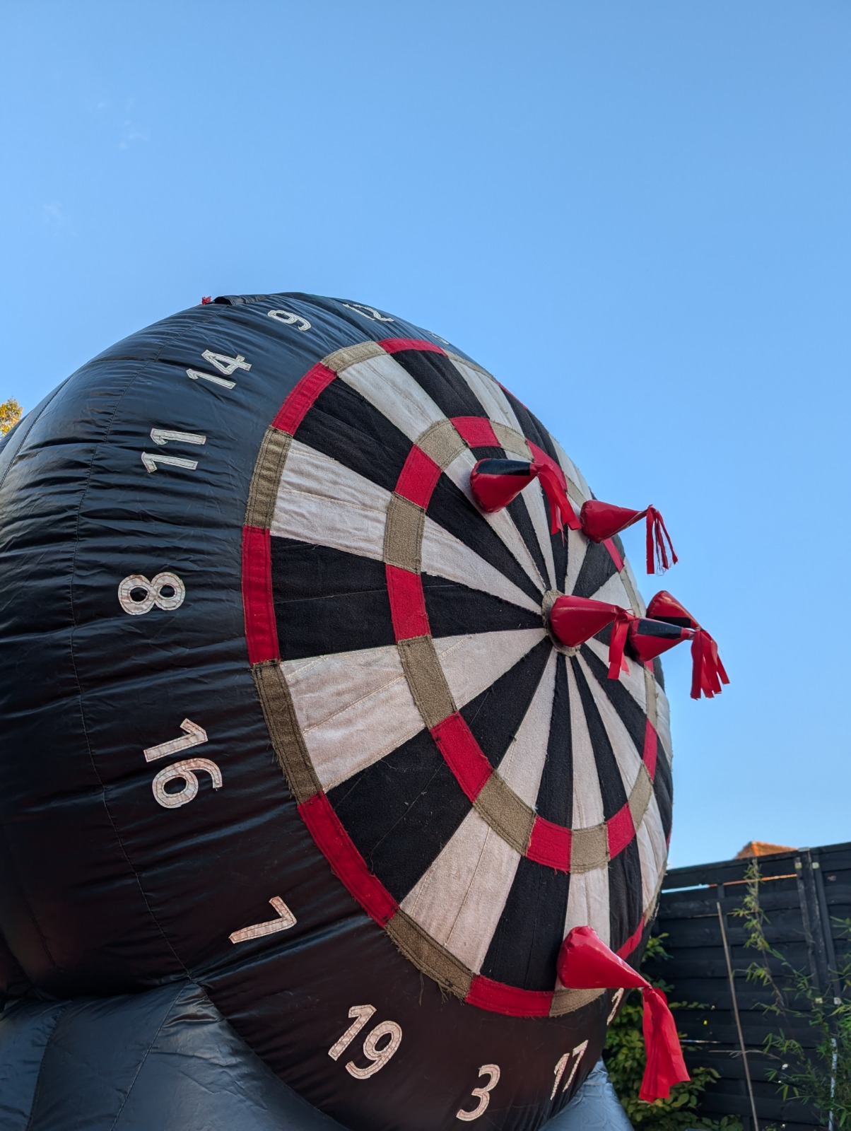 XXL Riesendart – Der gigantische Party-Volltreffer! Bringe dein Event auf das nächste Level mit unserer aufblasbaren XXL Dartscheibe. Dank der massiven Standfüße steht das Riesen-Dart sicher und stabil, während ihr euer Geschick unter Beweis stellt.